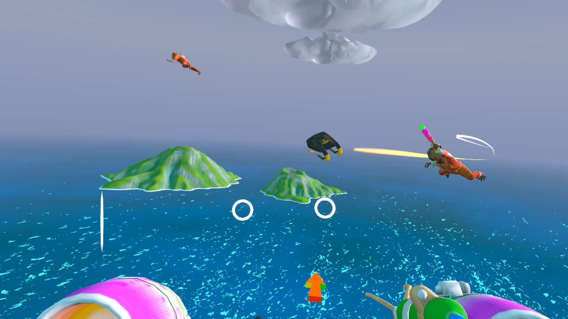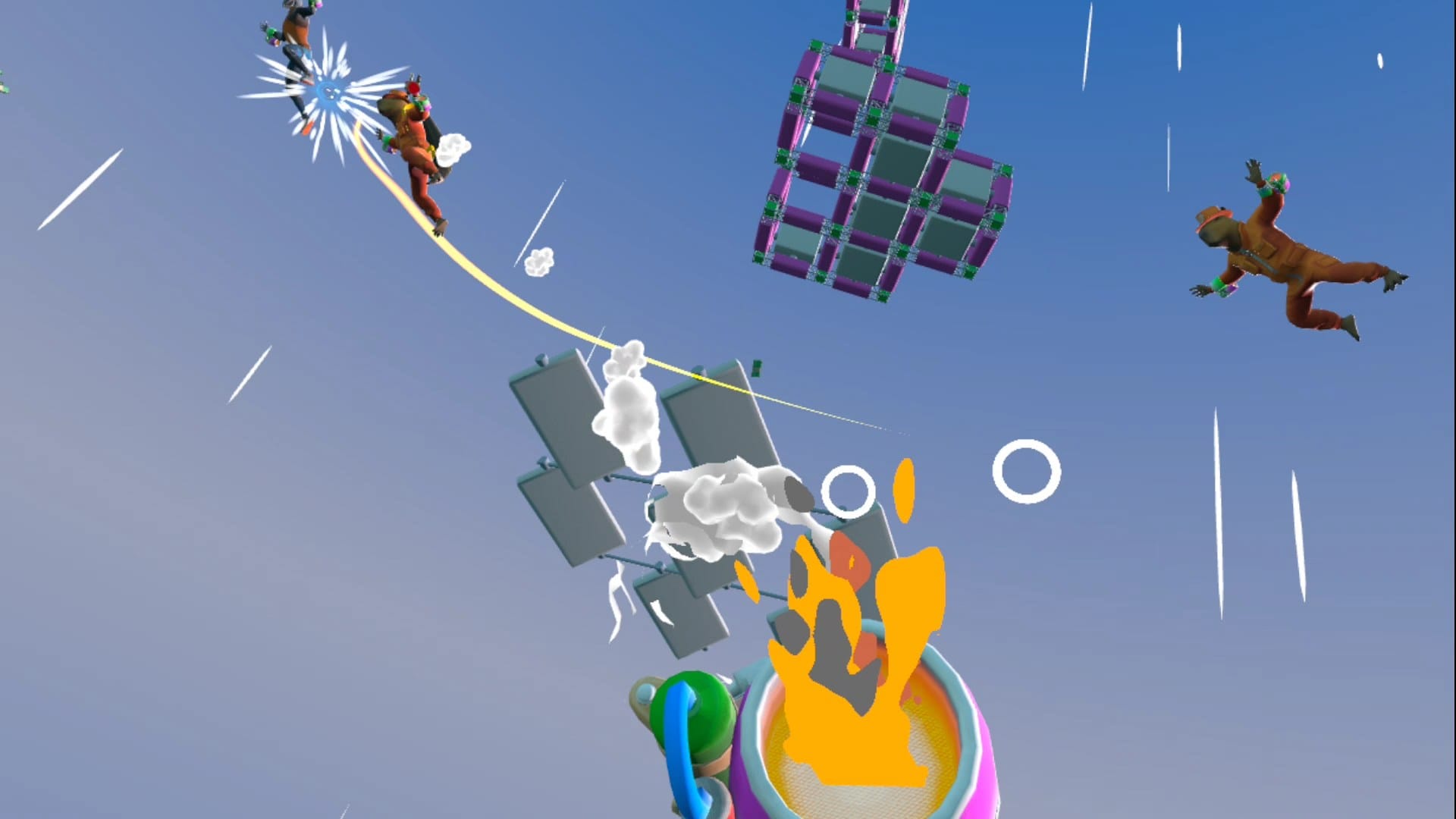 The overall effect here is basically Mario Kart in the air, as we realized in our play session, with gameplay that's both competitive and tactical while lighthearted and approachable.