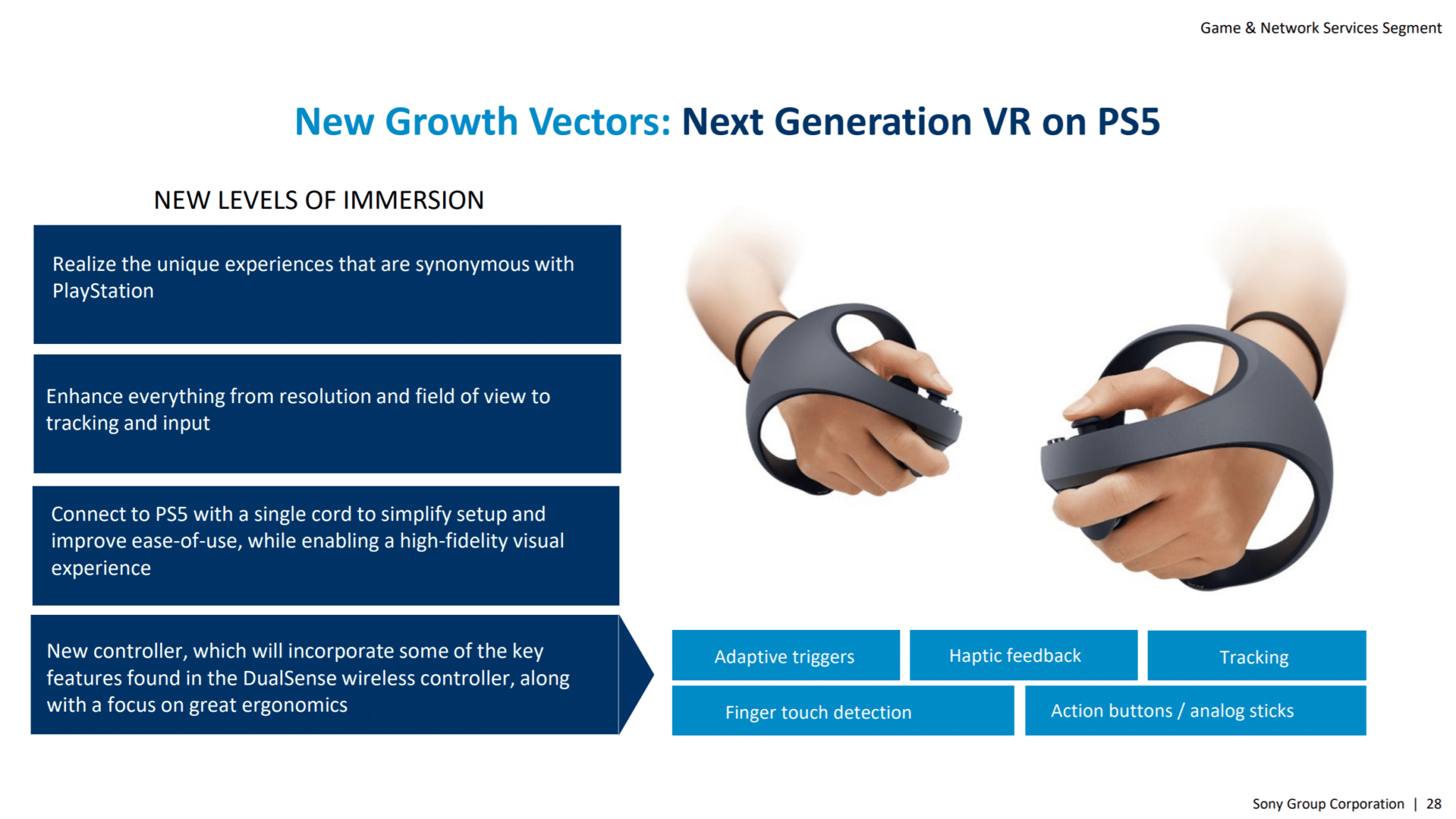 The company states as much in a recently-released investor relations document that also revealed games like Uncharted 4 are coming to the PC platform. One slide talking about ‘New Growth Vectors’ for the PlayStation division in the PS5-era focuses on the recently-confirmed ‘Next Generation VR on PS5’.