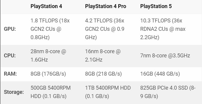 The PS5 is an absolute powerhouse, capable of delivering native 4K games with stunning graphics. Meanwhile, the specs promise PC-like power in console VR. Here’s a chart outlining the specs for the console stacked up against the PS4 and enhanced PS4 Pro, whipped up by our own David Heaney.