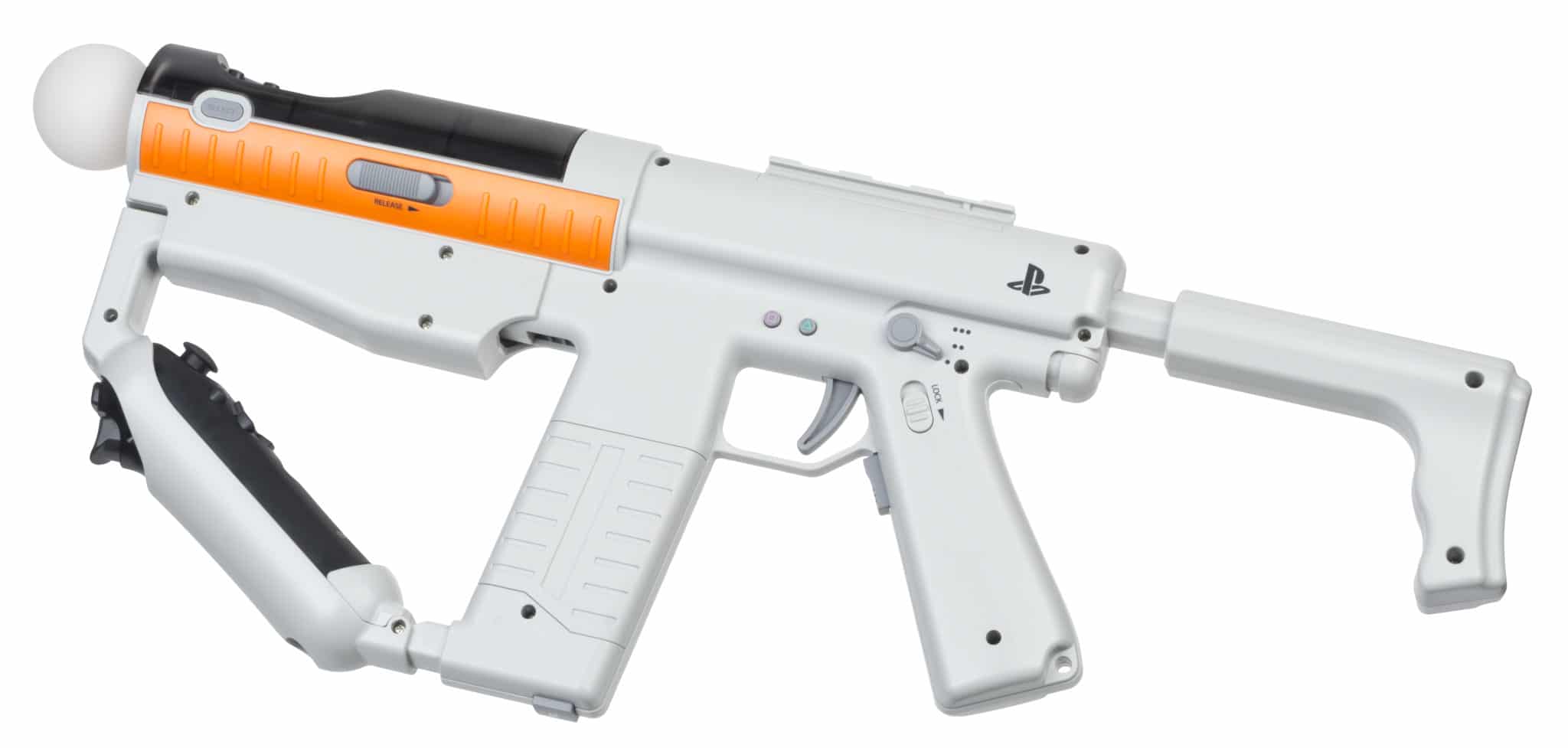 If you’re like me it was probably — quite literally — a lightbulb moment. The Move controller’s bright bubble stuck onto the end of a rifle-shaped device with dual-analog sticks for unprecedented VR shooter immersion. Brilliant! Another ace bit of engineering from Sony.
