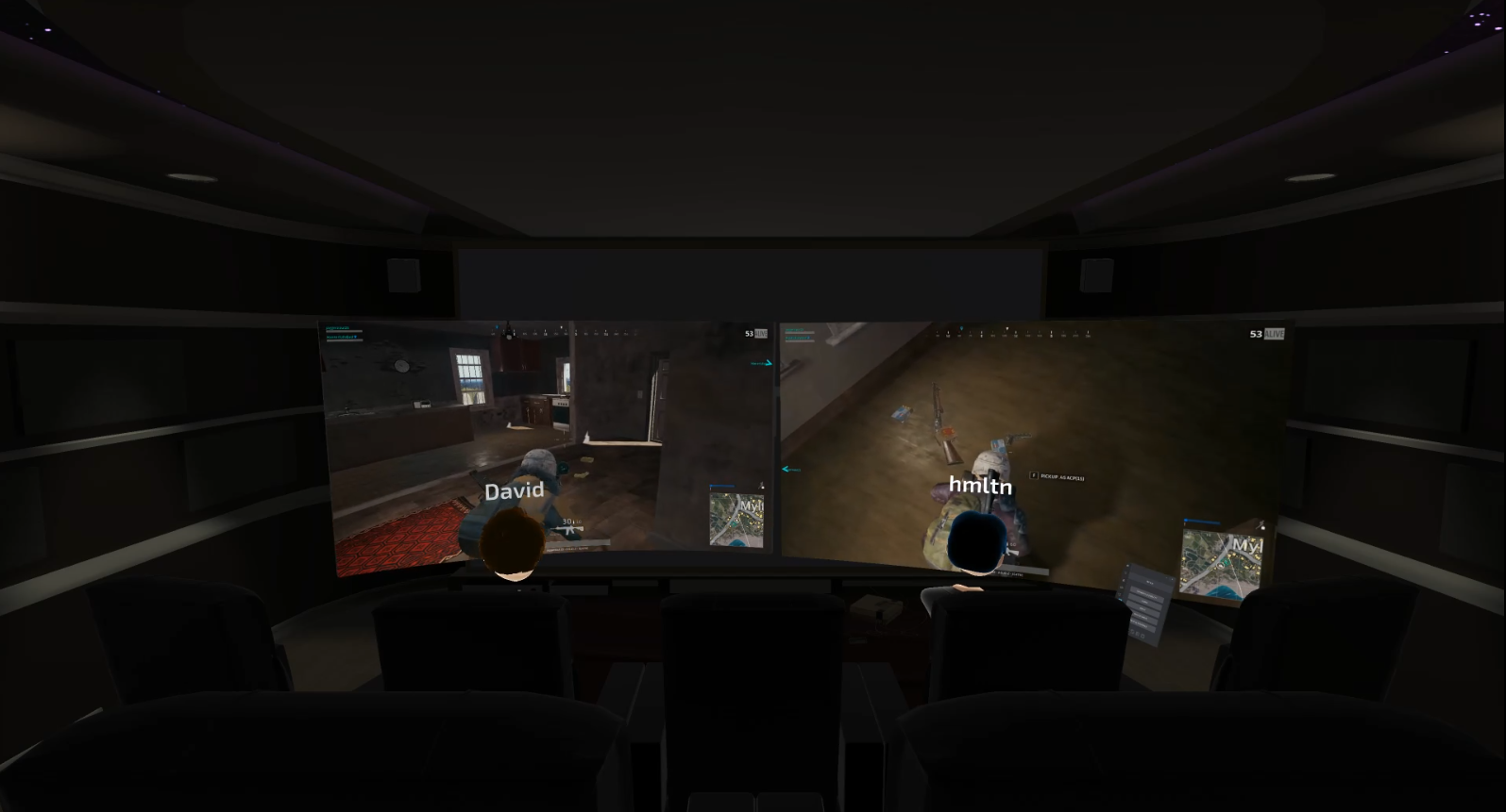 As a replacement for the lack of real VR support in PUBG we decided to set it up in Bigscreen to create the illusion of split-screen multiplayer. Our Senior Editor, Ian Hamilton, and I sat beside one another in Bigscreen’s Home Theater environment and aligned our screens out in front of us. Since we were playing simulataneously using the app’s impressive desktop streaming technology, it felt just like we were playing in real-time right next to each other.