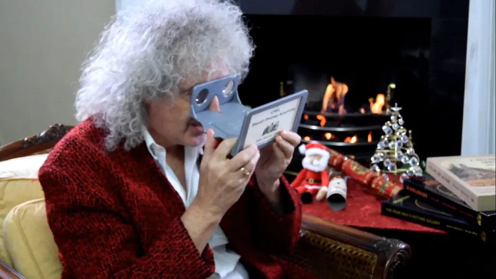 May does his best to explain VR, informing us that “you don’t want to miss out on VR, because people are doing it now”. Thanks, Brian. You might have to forgive the romantic Christmas-themed fireplace setting, though, as the video was first launched back in December 2015.