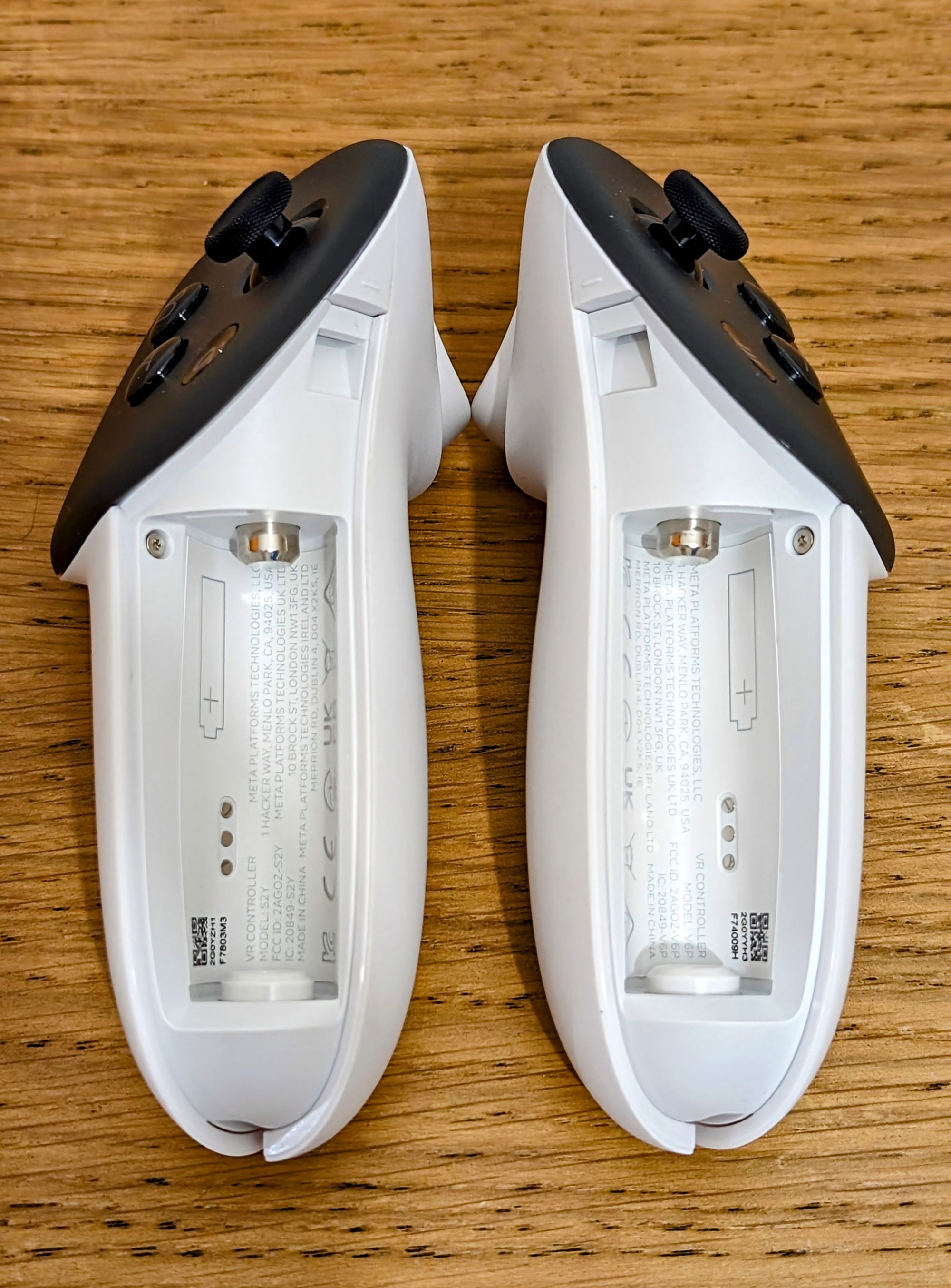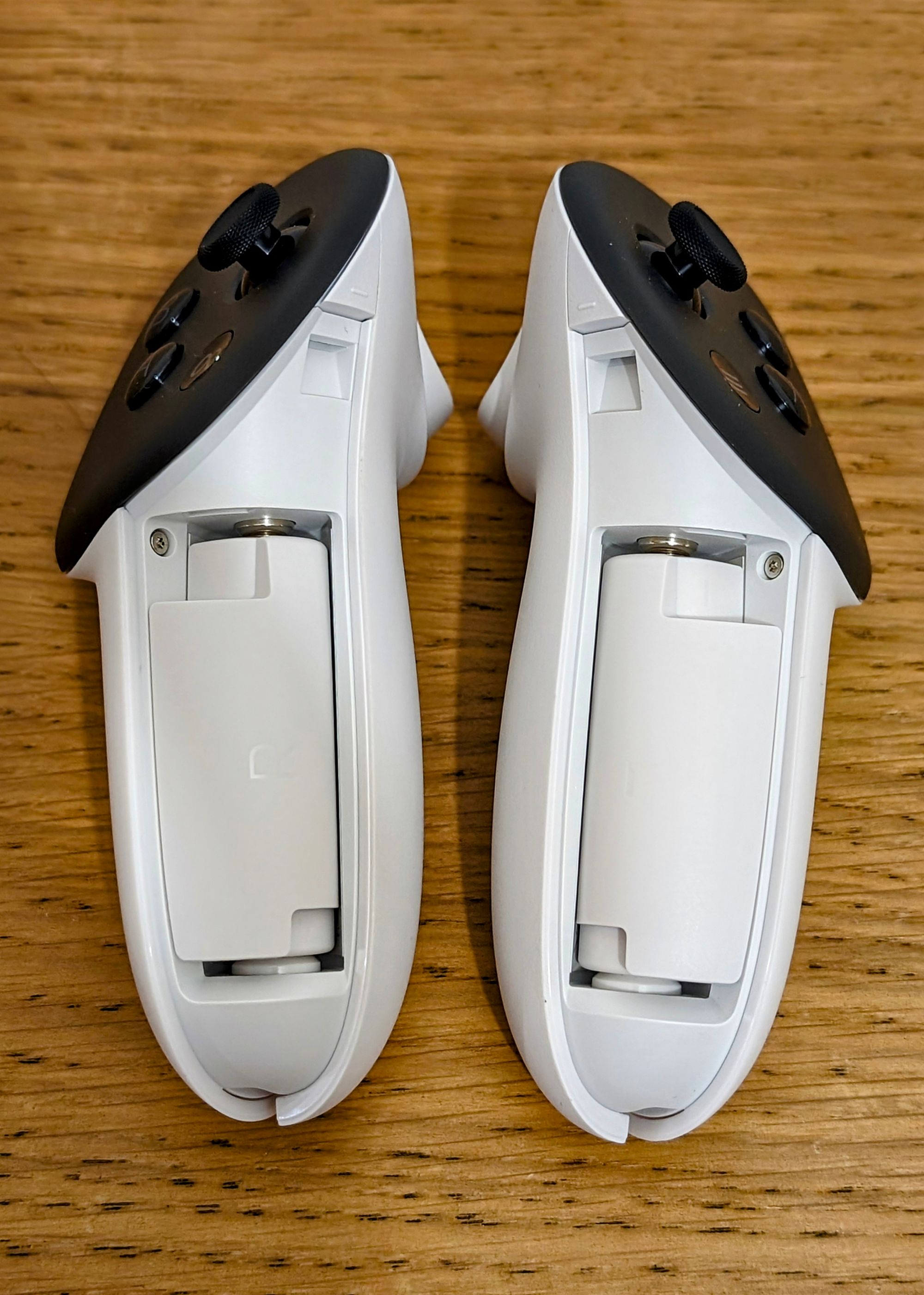 For the controllers, it uses electromagnetic inductive charging of the same kind you might use for your smartphone on your bedside table. You replace the regular AA batteries with the included Meta batteries which wirelessly recharge through the plastic cover.