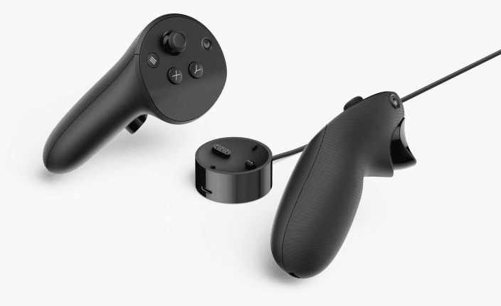 The Touch Pro controllers track themselves via three cameras and a relatively powerful onboard chipset, meaning tracking works at any angle regardless of where the headset is facing.
