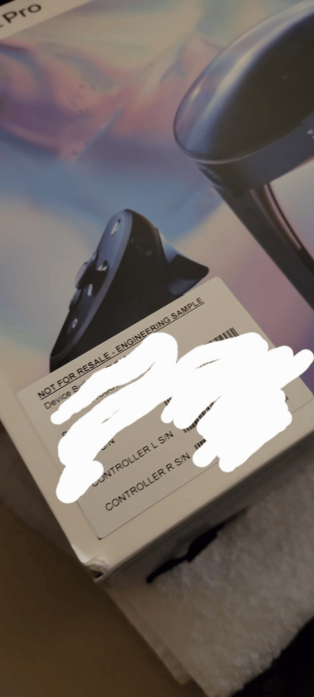 Ramiro Cardenas first posted images in the ‘Oculus Quest 2’ Facebook group appearing to show Quest Pro packaging labelled ‘NOT FOR RESALE – ENGINEERING SAMPLE’. Cardenas claimed the boxes were left in the hotel he works at. The packaging resembles Quest 2’s, and like with Quest 2 the storage size is listed in the top right – in this case 256 GB.