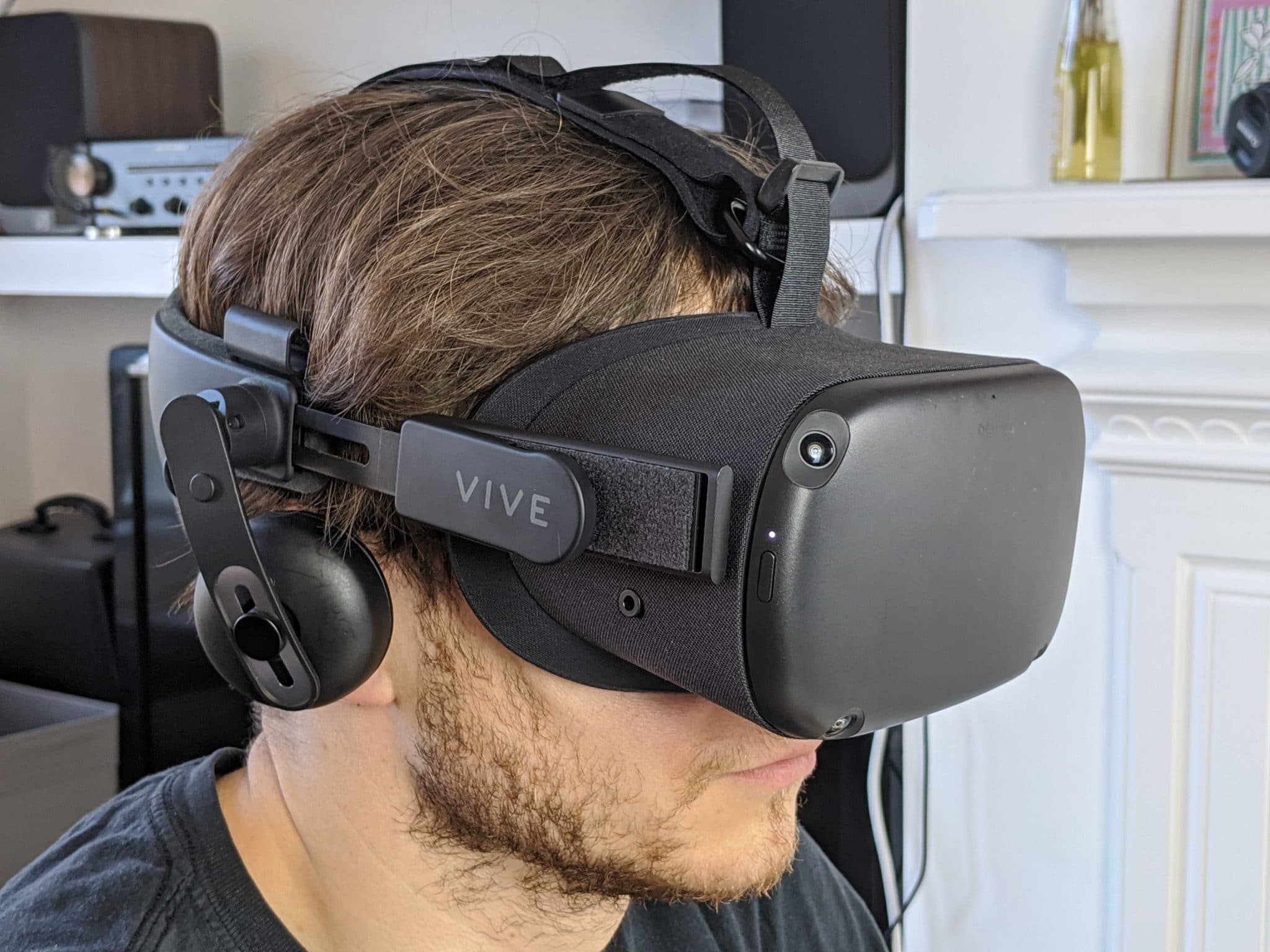 VR Power is an extraordinary accessory that’s unfortunately supply constrained just like Oculus Quest right now. In our recent review, the battery pack attaches to the strap behind your head and then runs a short wire over the top of your head to the Quest’s charging port. This dramatically extends the battery life of the headset while simultaneously operating as a counterweight that relieves pressure from the face.