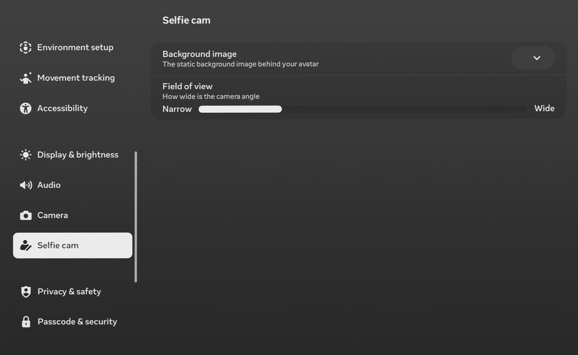 Further, a new 'Selfie cam' settings tab has been added to the Horizon OS settings, with controls to set the background image and virtual field of view.