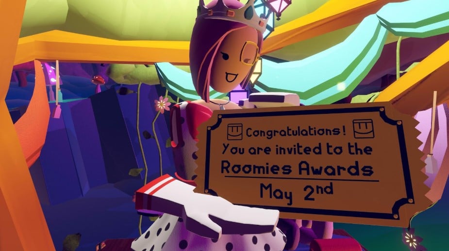 I play Rec Room with Mint almost daily. She usually uses the Rift S in our computer room, I take the Oculus Quest, and we meet up in VR to play Rec Room’s addicting paintball mini-game. Sometimes, Mint convinces me to take a break from competitive gaming, and explore more social settings. The days leading up to The Roomies was one such occasion.
