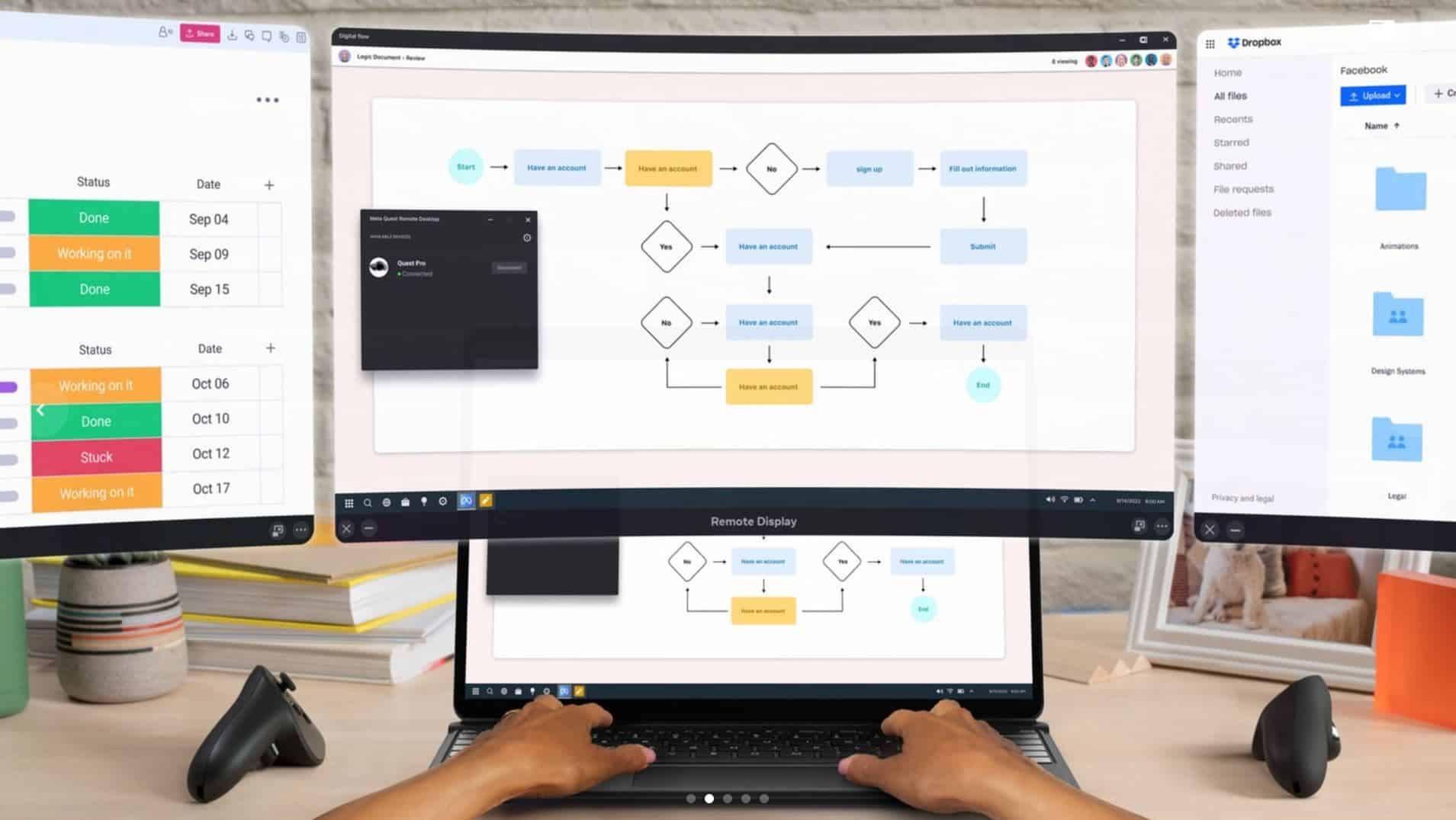 We’ve reached out to Meta to check on whether Remote Display works on both Quest 2 and Quest Pro. We haven’t seen the app on our headsets yet and we’ll be curious to test the feature and see how it works with Meta’s existing multitasking support. A listing on the Quest store shows the Remote Display (Beta) app from Meta Quest with hand tracking and controller tracking support mentioned. The screenshot, embedded above, shows the computer accessed alongside other windows on Quest. The app’s description says it “is optimized for use with Meta Quest Pro color passthrough.”