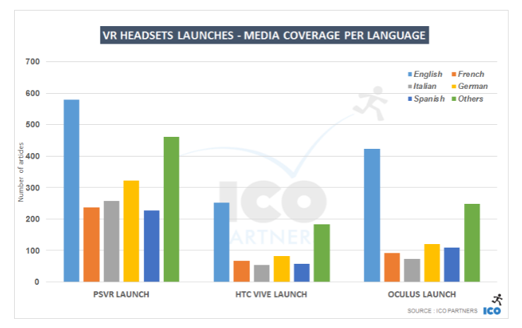 Research firm ICO Partners‘ Thomas Bidaux this week published a new report analyzing the media coverage of Sony’s new device as it launched on October 13th, comparing it to that of its two rivals, the PC-based Oculus Rift and HTC Vive. The results indicate that PS VR was far more widely covered than Rift and Vive, which launched just days apart from each other at the end of March and start of April respectively.
