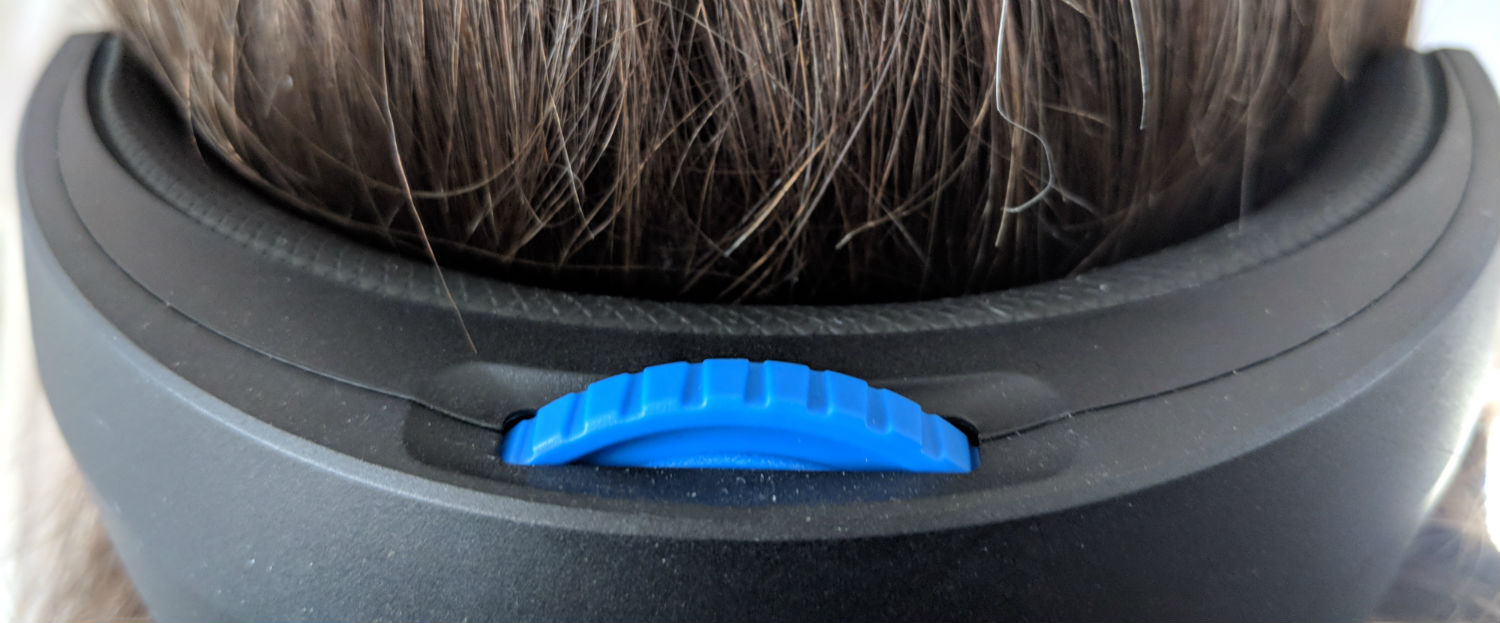 I pushed the lenses up to my eyes holding the headset in my hands so everything looked crisp and wide, but couldn’t recreate that seemingly perfect fit using just the headband and dial behind my head to tighten it. I couldn’t seem to get the perfect fit that maximized both the sweet focused spot on the lenses as well as my field of view. Getting the headband resting at just the right position though provided a good enough sweet spot and wide angle. Every face is different, of course, and so your mileage may vary here. There’s also notably no adjustment with this headset to space the screens out so they are centered in front of each of your eyes.