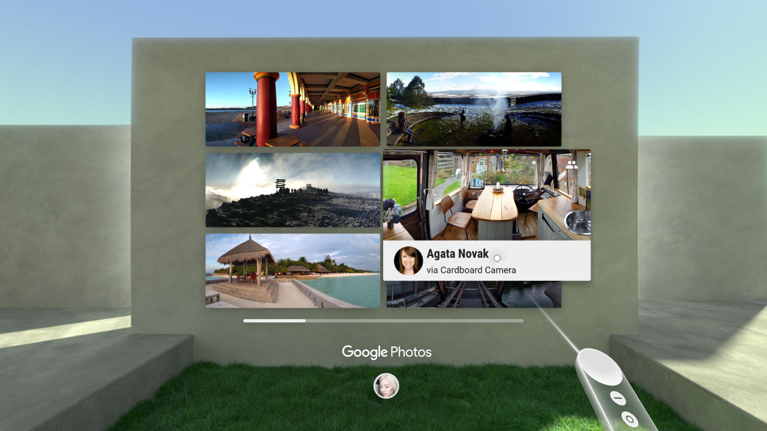 Google Photos got big wows from my family in VR. The app loaded panoramic photos automatically from my account, with pictures of rainbows and snow flurries taken months apart ready to view. A turn of my head let me examine features as if I was standing on my porch checking out the weather.
