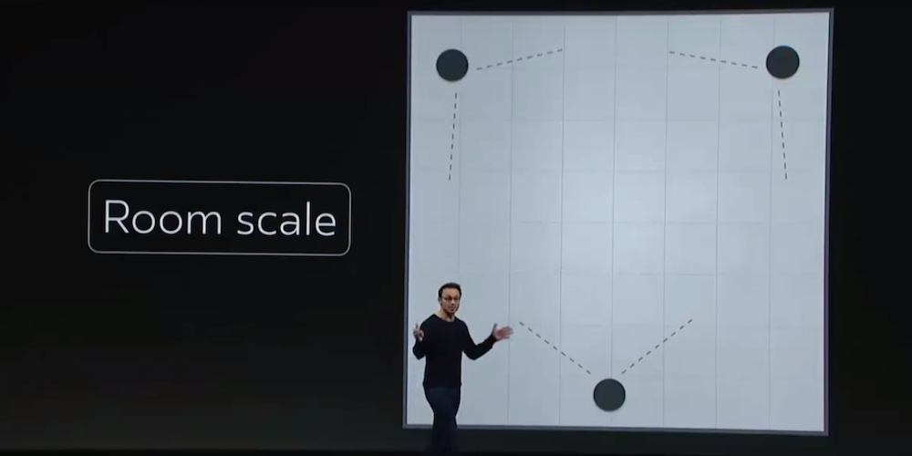 We suspect room scale on the Rift will work best with a triangle set up for the sensors, as shown by Iribe during his presentation. The first two sensors could fit on your computer desk facing in toward each other slightly. The third sensor will be a bit trickier. Ideally, it needs to go directly behind you as you play and so will likely require a custom wall mount or a conveniently placed bookshelf or table. Oculus has not mentioned whether it will include mounting equipment in the box for the standalone sensors.