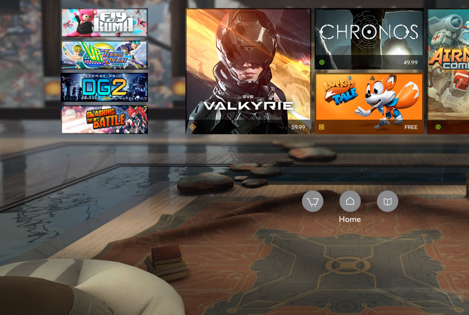 The rumpled carpet seen on the floor of Oculus Home (where Rift owners select apps to visit) has been a minor annoyance to some who would prefer a tidier living room. More important, however, are potential fixes to tracking problems some users have reported with their headsets since the release of Oculus Touch controllers in December. The controllers come with an additional Sensor and more can be purchased to cover larger areas, bringing the functionality of the system closer to that of the room-scale HTC Vive headset.