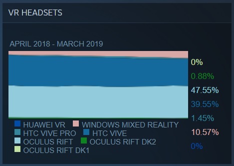 This is likely one of if not the last time we’ll see the Steam Hardware Survey in its current form. Back at GDC in March, Oculus announced the Rift S, which is due to launch this spring. It could be arriving anywhere from in a few weeks to a few months. Last week Valve also announced its Index VR headset, which a leak told us will ship in June.