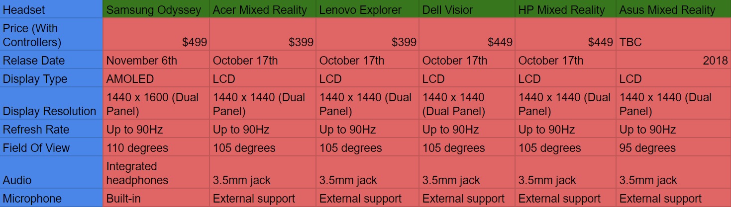 Editor’s Note: This spec comparison originally ran October 3, 2017. It was updated on October 18, 2017 since the headsets were released this week.