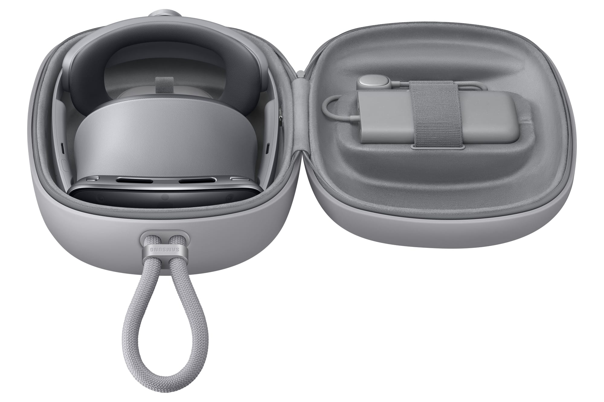 Galaxy XR Travel Case ($250), storing the headset and its tethered battery.