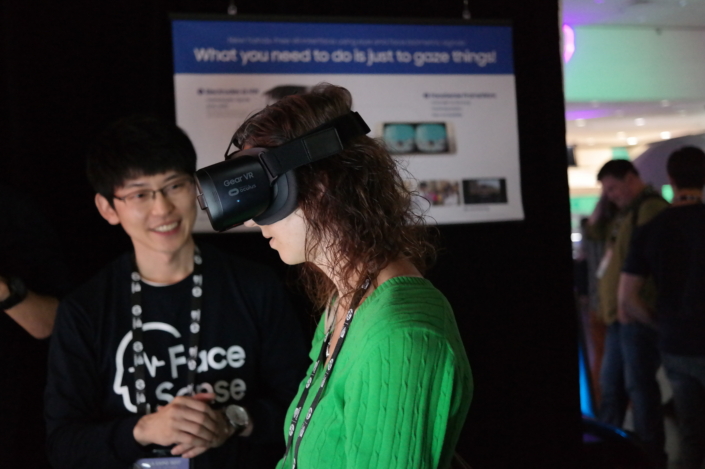April 14th – 15th at the VRLA Expo, Samsung showed a new creation from their C-Lab division. C-Lab cultivates ideas that are more experimental and this particular one provides a new way to navigate within VR. Detailed in an announcement, Facesense tracks electric signals that are created any time we speak, change our expression, or shift our gaze. Those signals are then used for navigation input along with a few spoken commands.