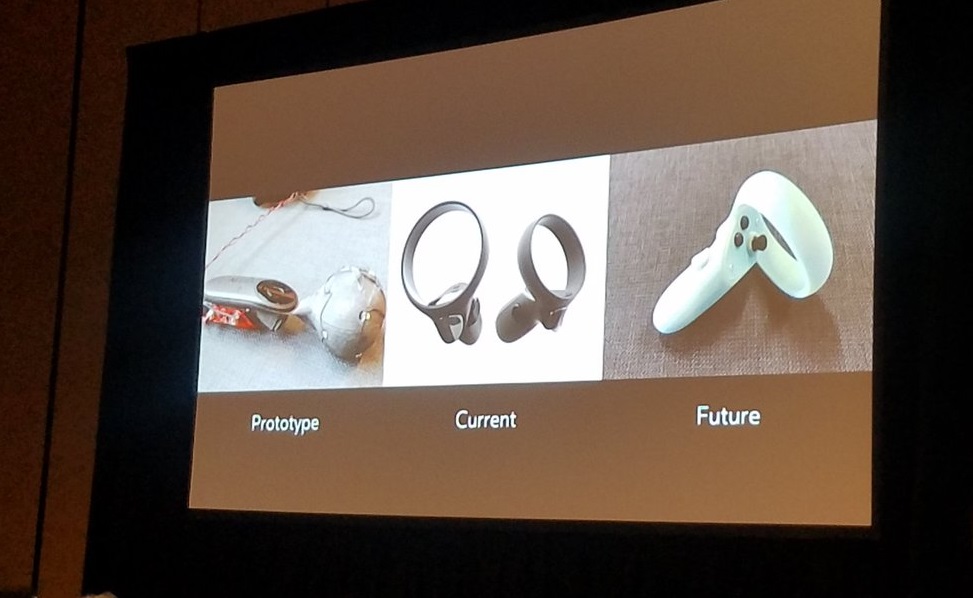 The Santa Cruz controllers are essentially a new iteration of Oculus’ Touch controllers for the Rift. They’ve both got two face buttons, trigger and grip buttons and, as introduced at GDC this year, analog sticks too. The only real difference is that the tracking ring used to find the controllers in VR now loops up over the device instead of under it so Santa Cruz’s sensors can see it easier. Whether or not the level of control will match Rift and Touch remains to be seen, but it’s promising.