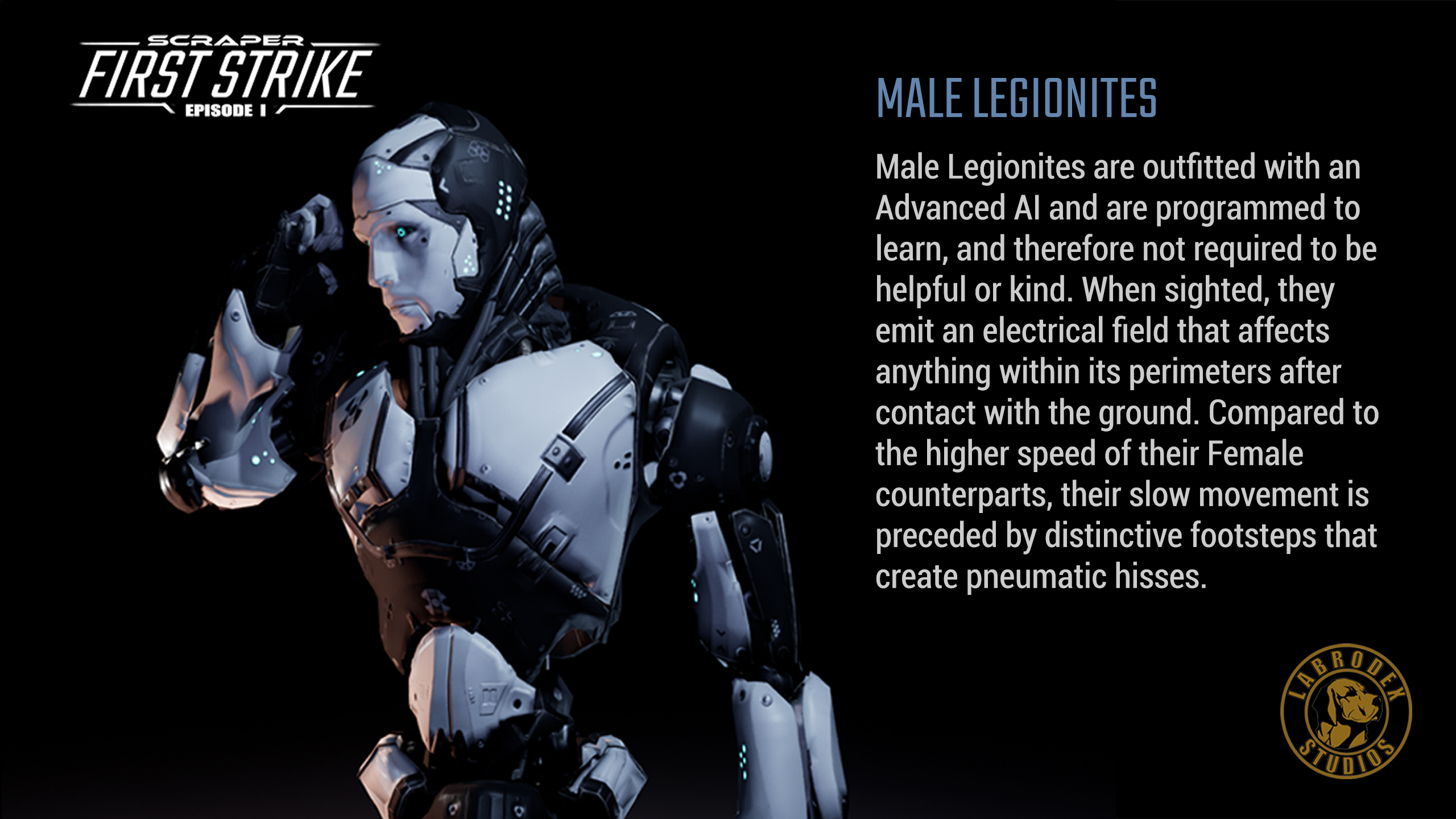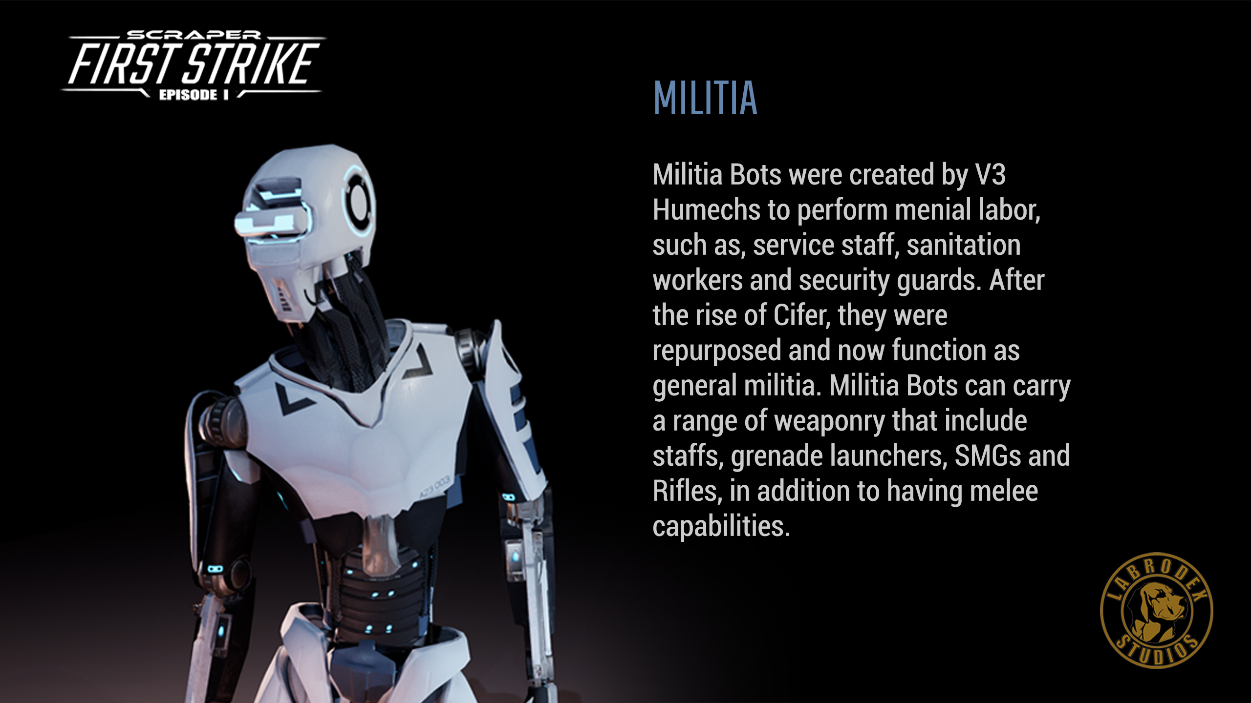 The sci-fi shooter Scraper: First Strike is almost out, and we thought we’d take a look at some of the characters in the game to give you an idea of some of the humans you’ll be protecting and the self-aware automatons – the Humechs — looking to destroy humankind in order to save them all.