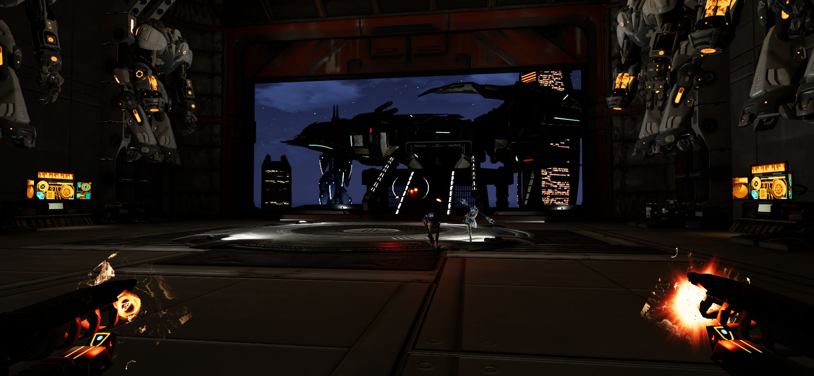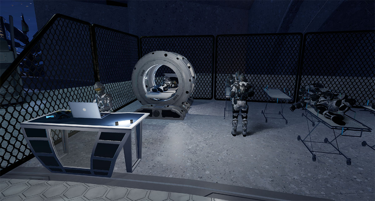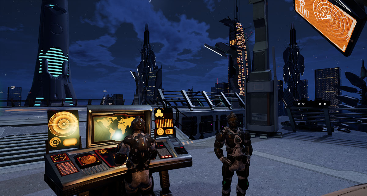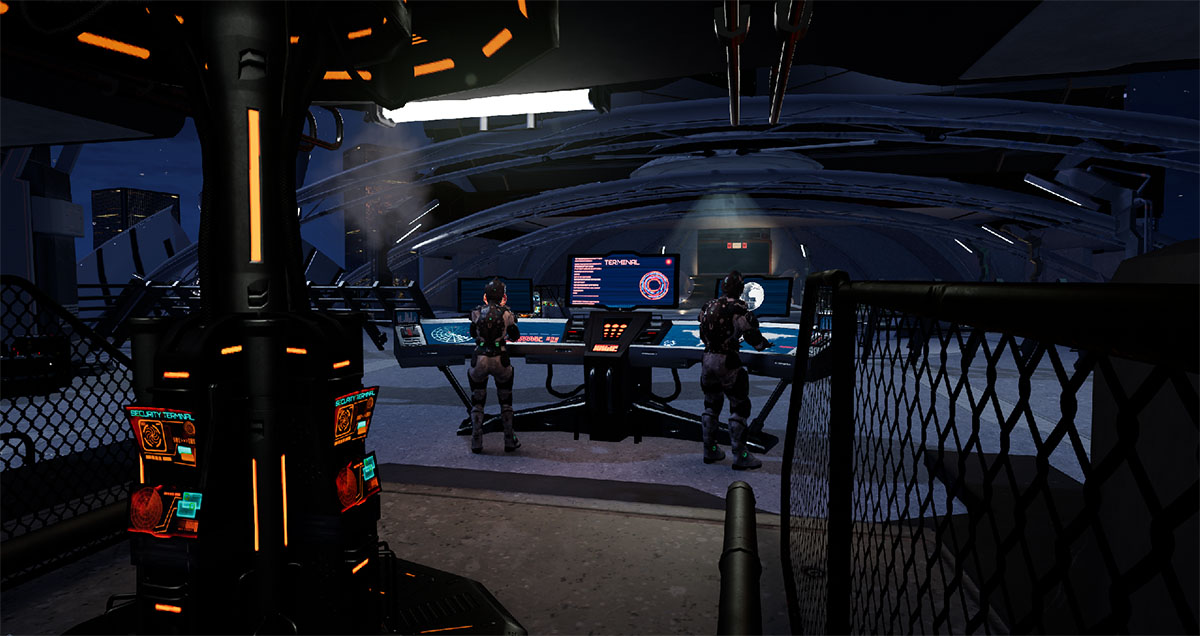 As this is a VR game built on Unreal for the Oculus Rift, the team has put a lot of thought into how to use the Touch controls in a unique and immersive manner. To this end, you can give affirmative thumbs up to NPCs, activate menu buttons and selectors with your fingertips and salute high-ranking officers in the HRF. It all works well to put you in the world and give you a sense of tangibility and interactivity.