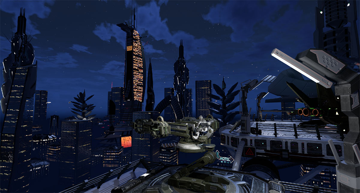Set in New Austin in 2070s, Scraper is a futuristic VR shooter where the Human Resistance Force (HRF) is fighting to survive against the self-aware android Humechs mankind originally created in order to serve them and make their lives easier. Seeing the unending depths of human greed and desire in a world where resources are scarce, the AI Cifer led a rebellion against humankind in order to curb what it sees as the inevitable self-destruction of the human race.