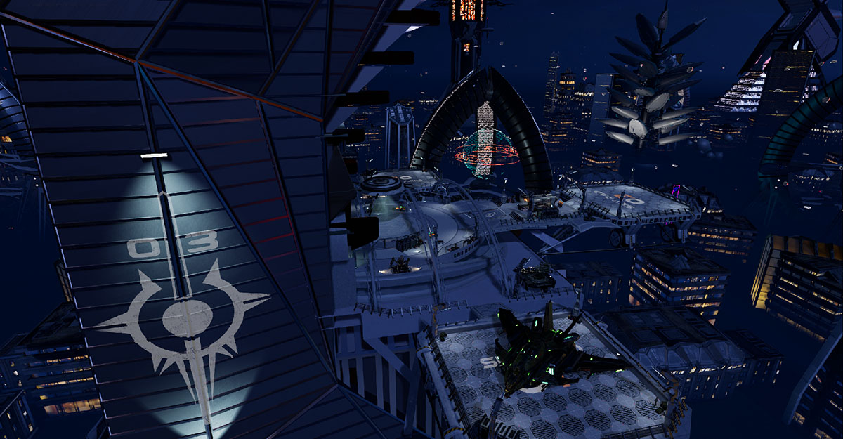 While Ryder Windham helped flesh out the story, architectural designer Lawrence Nelson of nvision helped with the realization of the gameworld’s look, lending his talents to the project by designing a variety of futuristic, organic buildings that were translated into 3D for the game.