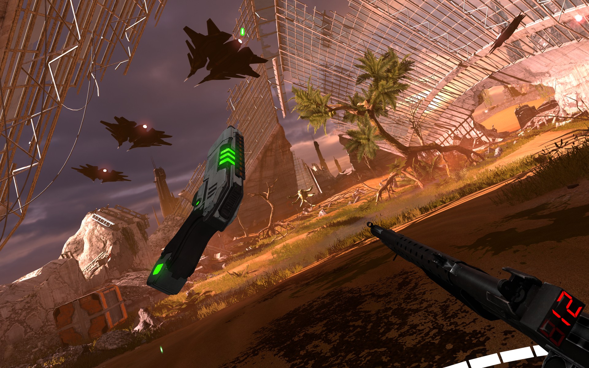 “For the first time, immerse yourself in the universe of Serious Sam – travel the galaxy, meet interesting aliens, and blow the shit out of them all in a mind-blowing, fast-paced, guns-blazin’ virtual reality environment. Get into the action immediately after choosing one of several missions, drop in and start wreckin’ faces. With new enemies and old favorites, players will pick up and master a variety of increasingly insane weaponry – this is serious business, after all. Use your power ups to navigate your skill tree to be the boldest, biggest and most virtual Sam you can be. Customize or upgrade your gear on the Saratoga battlecruiser in-between missions using in-game currency that has nothing to do with real-world currency.”