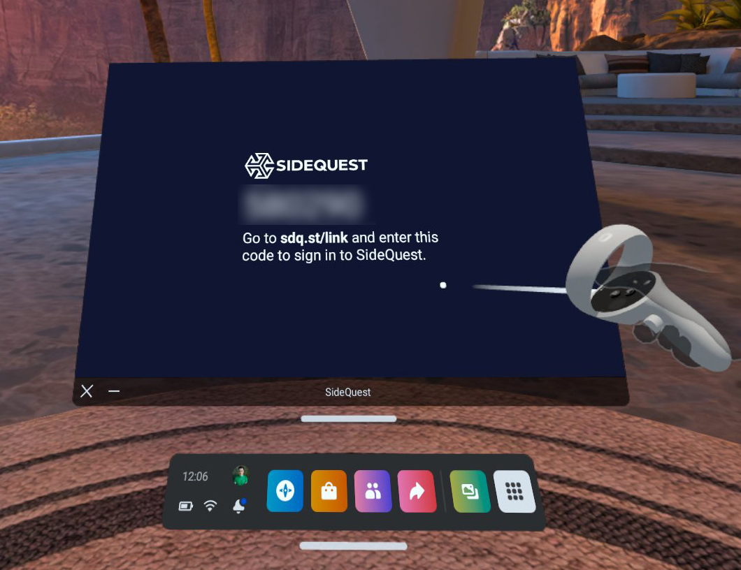 SideQuest will present you with a linking code. Using a computer, phone or Meta Browser, head over to sdq.st/link, login to SideQuest (if you haven’t already made a SideQuest account, you will need to do so now) and enter your headset’s unique 6-digit code.