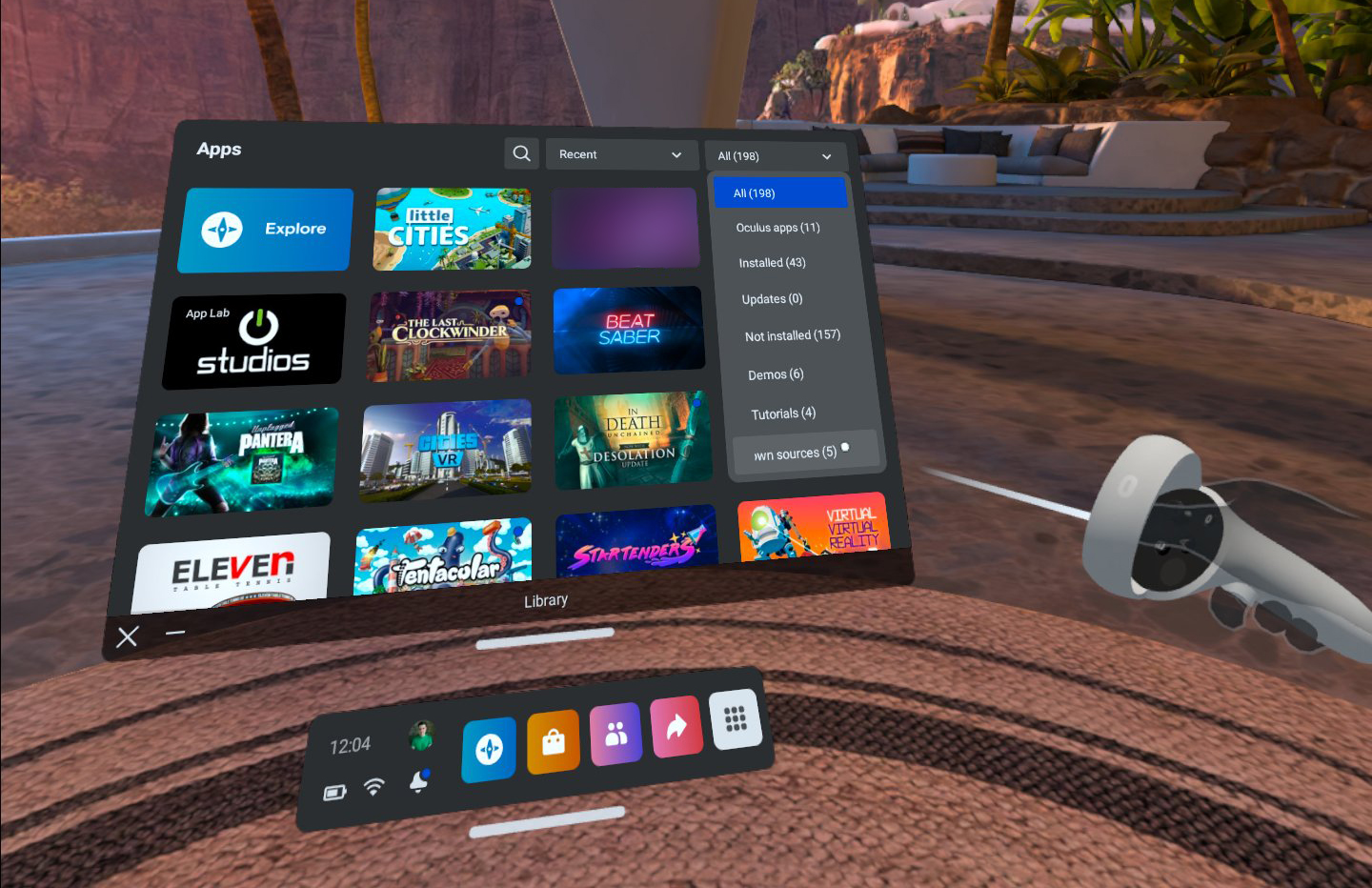 Any other content installed through SideQuest will be listed under the ‘Unknown Sources’ tab. You can find this section by selecting the drop down menu in the top right of your Quest’s App Library, and scrolling down to select ‘Unknown Sources’.