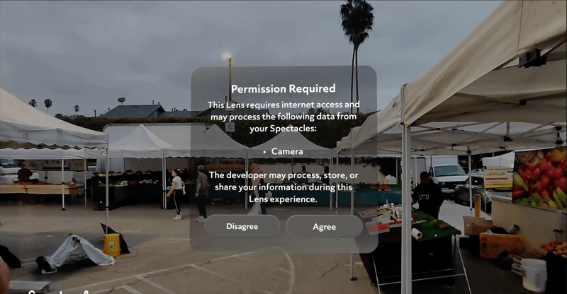 Now, Snap has added the ability for experimental Lenses to get both raw sensor access and internet access. The catch is that a permissions prompt will appear every time the Lens is launched, and the forward-facing LED on the glasses will pulse while the app is in use.