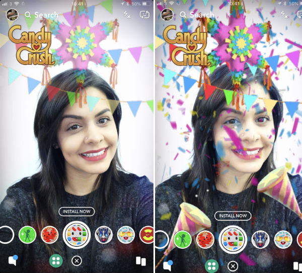 In the example above, you can see a woman taking a selfie using a Candy Crush filter that now features a prominent “Install Now” button, enticing the user (and viewers) immediately download and play the game. Imagine a world where you can take a selfie with AR sunglasses sponsored by a major brand and then buy real-life versions of those sunglasses to be shipped to your house all without ever leaving your phone or app. It’s a powerful vehicle.
