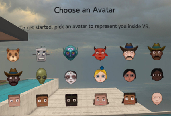 Will and Steve looked like aliens and Corvus looked like a cat. I was a robot. The heads we picked for ourselves prior to entering the room floated above chairs as we watched a few videos together. From where I was seated in the room, if I turned my head left I saw Steve and if I turned right I was looking at Will and Corvus. Our head movements in real life were matched by our avatars, so each of us could tell when we were looking at one another.