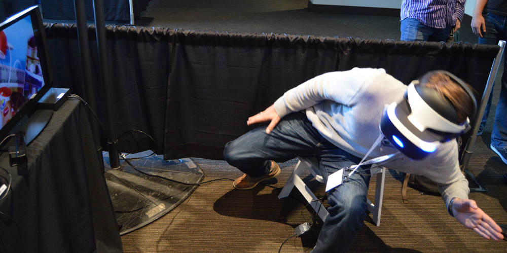 There was one last thing that I have to admit was a bit of a disappointment – localized multiplayer is probably a thing of the past, at least in the traditional sense. I asked the Sony representatives whether you would be able to play multiplayer with multiple Morphei (Morpheuses?) in the same room and I received a flat no. Apparently it just isn’t possible. They did say however that “asymmetric companion gaming” would be possible, and would likely be something we see. This means one friend could have on the Morpheus and another could be making things happen on an iPad in the scene. He then painted me an image of scaring your friend in a haunted house by triggering the scares yourself. Keep Talking and Nobody Explodes is an excellent example of another kind of localized multiplayer we are likely to see – something that takes advantage of the creative restraints to bring two people into a game.