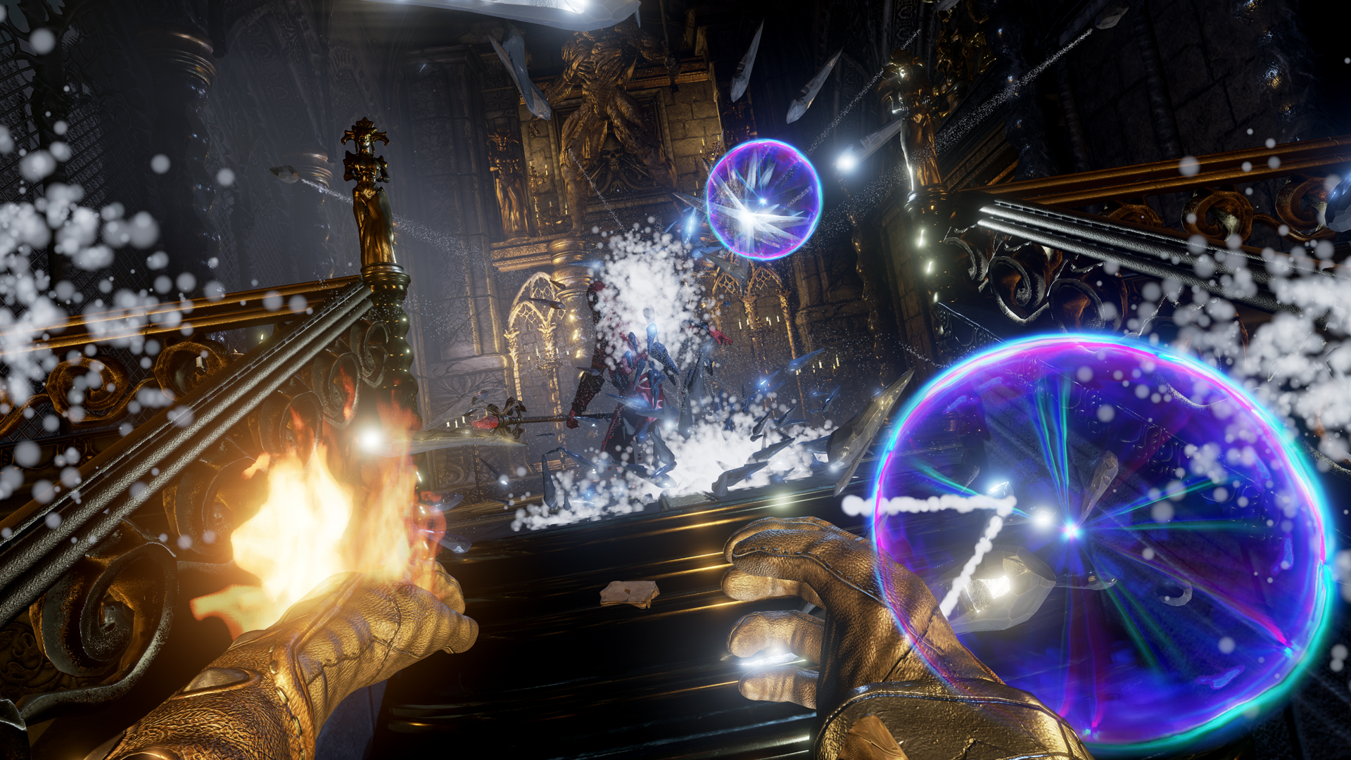 Similarly, I reach over my right shoulder with my right hand to grab my sword, which I can use to cut down my foes up close. The ragdoll physics and lack of haptic feedback (a common problem in melee combat for VR) was a bit immersion-breaking, but I’d imagine those issues will get ironed out over time. When either hand is empty it can pick up objects and can also draw symbols in the air to access spells. The symbols have been simplified from things like boxes and swirls to arrows and lines this time around — they’re much easier to draw accurately and quickly now.