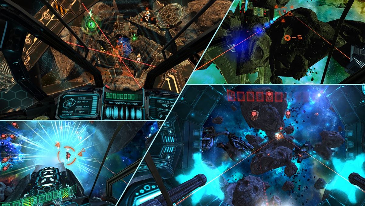 Overall, Space Stalker looks quite good too. Ship design is interesting, the asteroids and other sights are detailed, and your cockpit is cool looking. You can even look down and see your character’s body, which bears more than a passing resemblance to the woman pilot in EVE: Valkyrie.