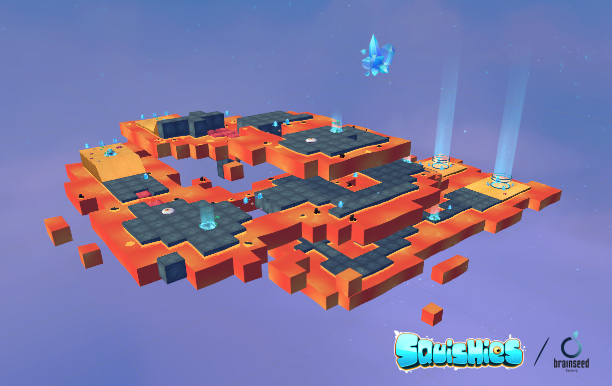 Squishies’ levels are made up of blocks, a little like Minecraft only not as blatant. I didn’t realize that each level could have been simply pieced together using these terrain cubes until I dived into the level editor myself to tinker around. It’s wonderfully simple; I can select which block I need from a menu then basically paint it into the world in front of me. I can choose different threats and power ups, change the gradient to add some verticality, and decided how many Squishies should be in the level.