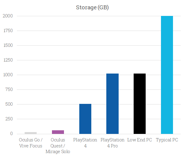 This is an area where standalones are significantly restricted compared to console or PC. And whereas those platforms support expandable storage, Oculus Go and Oculus Quest do not.