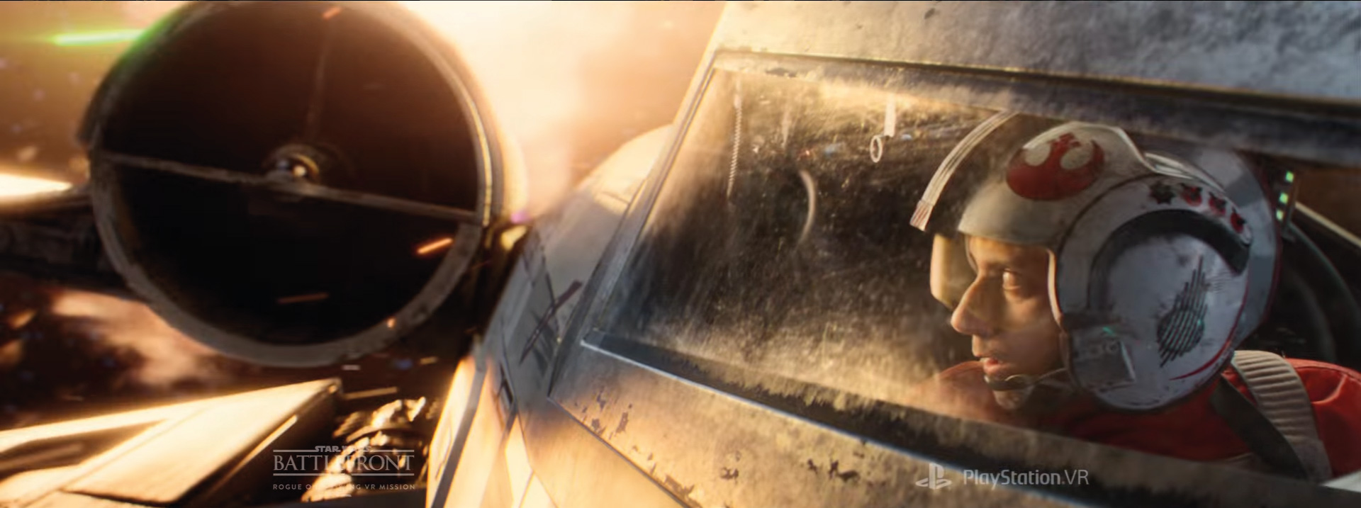 Star Wars Battlefront Rogue One: X-Wing VR Mission is certainly a confident entry in VR’s sprouting lexicon. A headset and the push of a button launches you into the well-crafted dream of virtually every Star Wars enthusiast. It’s a bit brief considering how good it is, but when the experience is as carefully planned and fine tuned as this, the dream is as simple as noticeably tarnished metal, a familiar orange jumpsuit, a series of metallic squeaks ringing from over my shoulder, and a flurry of deadly lasers shooting over the other.