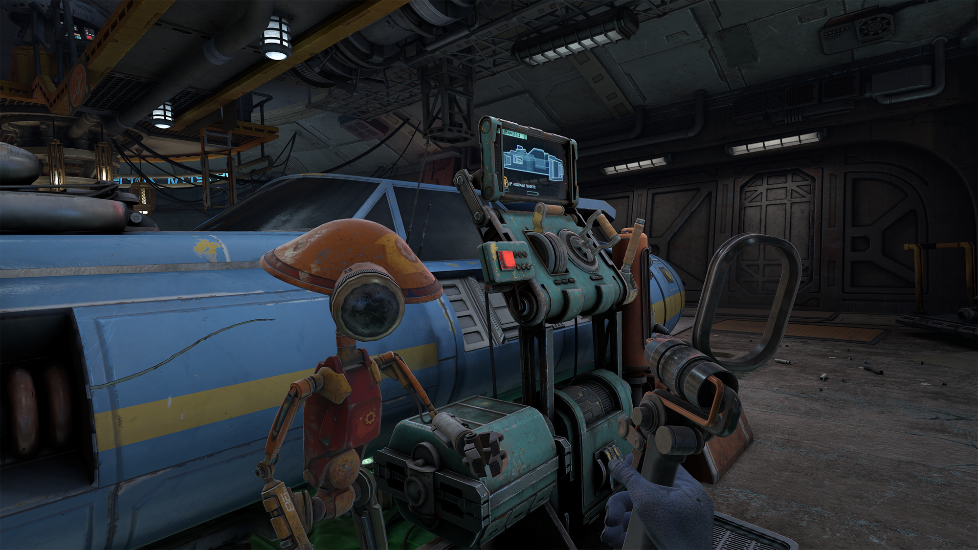 My demo switched between VR and XR space throughout the experience. We start immersed in Sebulba's garage alongside Volo’s podracing vehicle, discussing a plan for the upcoming race. The space is freely explorable, with a surprising amount of interactive minor objects throughout this detailed environment. Many levers and knobs are linked to your podracer that suggest you can directly tinker and adjust your racer in this garage as you progress through the story. However, this wasn't in the demo and specifics for such a feature were not clarified.