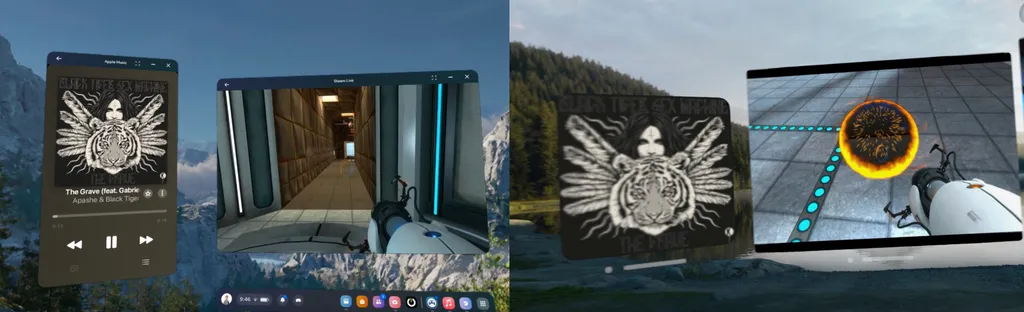 The video embedded below shows roughly one minute of video captured directly on headsets from Apple and Meta. Each VR headset is shown running the same four pieces of software:
