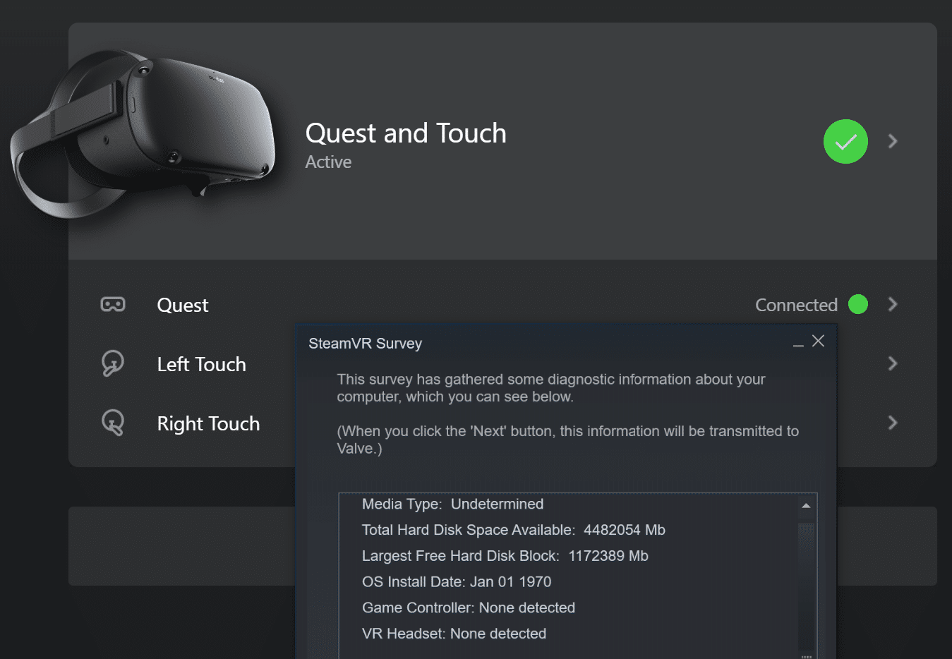It is possible that the Hardware Survey is registering Oculus Quest headsets as Rift S, since this is how SteamVR sees Quest in Link mode. However, this would only happen if the Quest was connected to the PC at the time of the survey, and some users have reported that ‘None Detected’ appears when surveyed with Link.