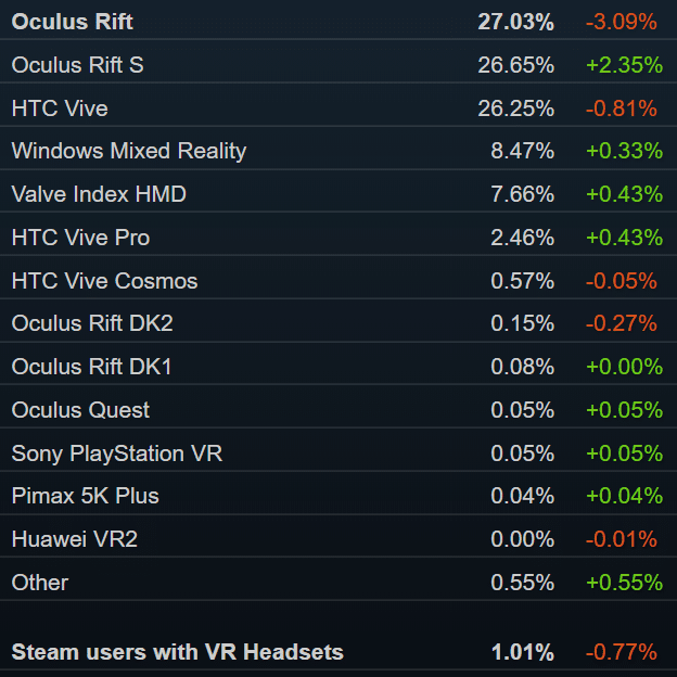 UploadVR has been collecting the VR headset data reported by this survey for years now. Because Facebook and HTC don’t release sales figures, the survey is actually the most reliable publicly available indicator of PC VR headset sales.