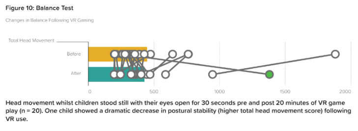 In the balance test, one child “showed a dramatic decrease in postural stability” following VR use.