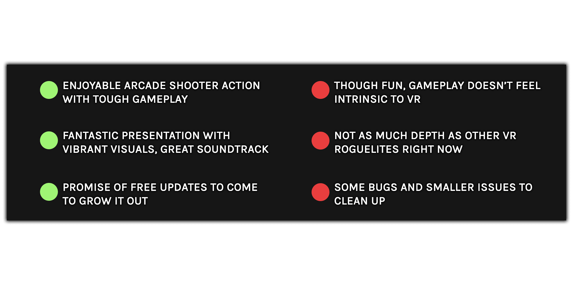 Sweet Surrender has a lot of room to grow. That much was made clear when Salmi Games promised extensive free updates at launch, but it’s also obvious when you stack it up next to the depth of other VR roguelites, with a comparatively light loot system and smaller overall dungeon size. But, despite its relative simplicity, the game’s moreish difficulty, enjoyable arcade gameplay and hypnotic visual and audio flair make for a rock-solid roguelite I was more than happy to lose hours within. This might be just the start of Sweet Surrender’s journey, but it’s a really promising one.