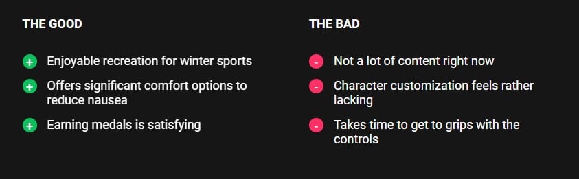 What is it?: A VR winter sports game featuring snowboarding, skiing, and wingsuit flying