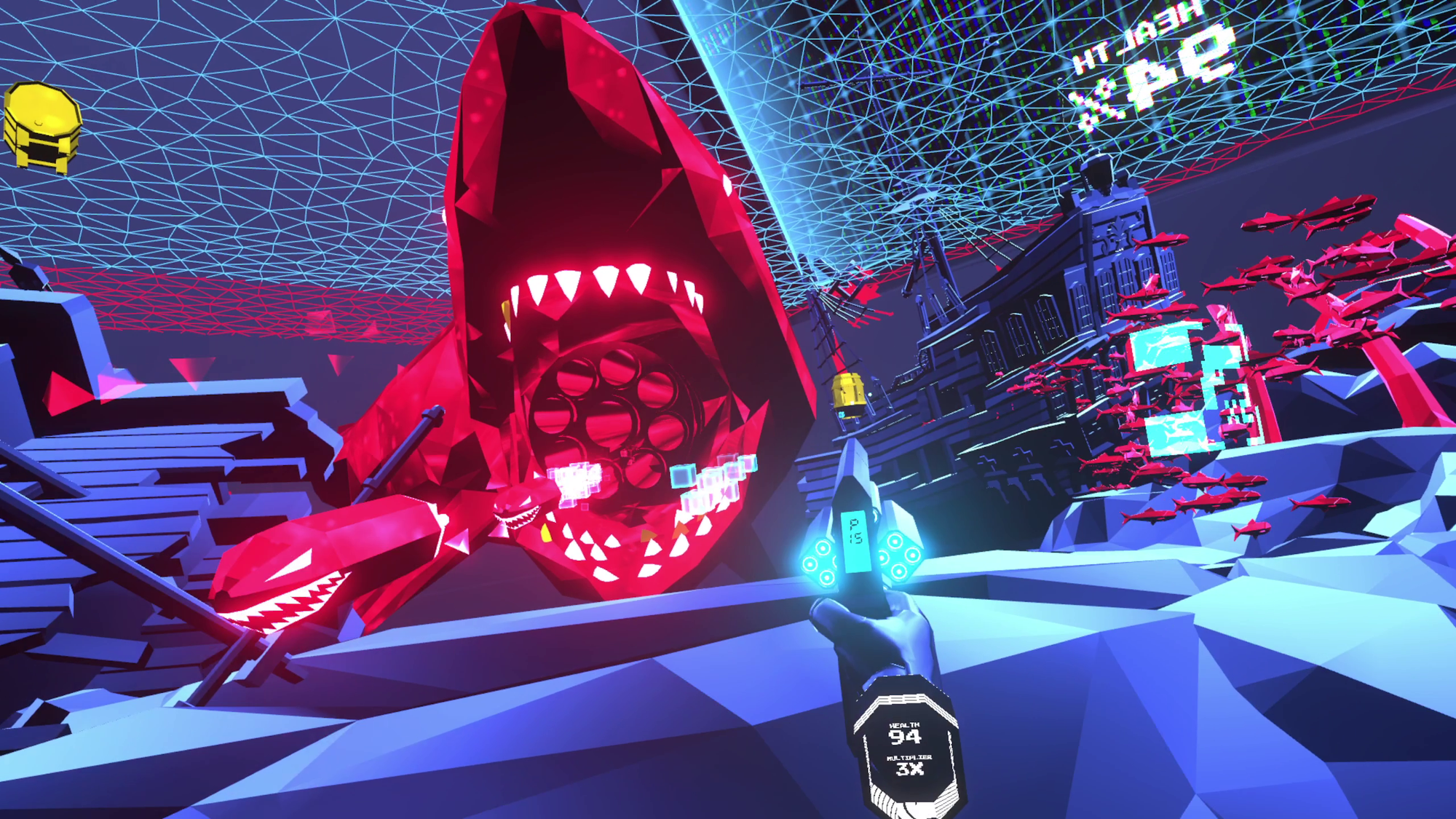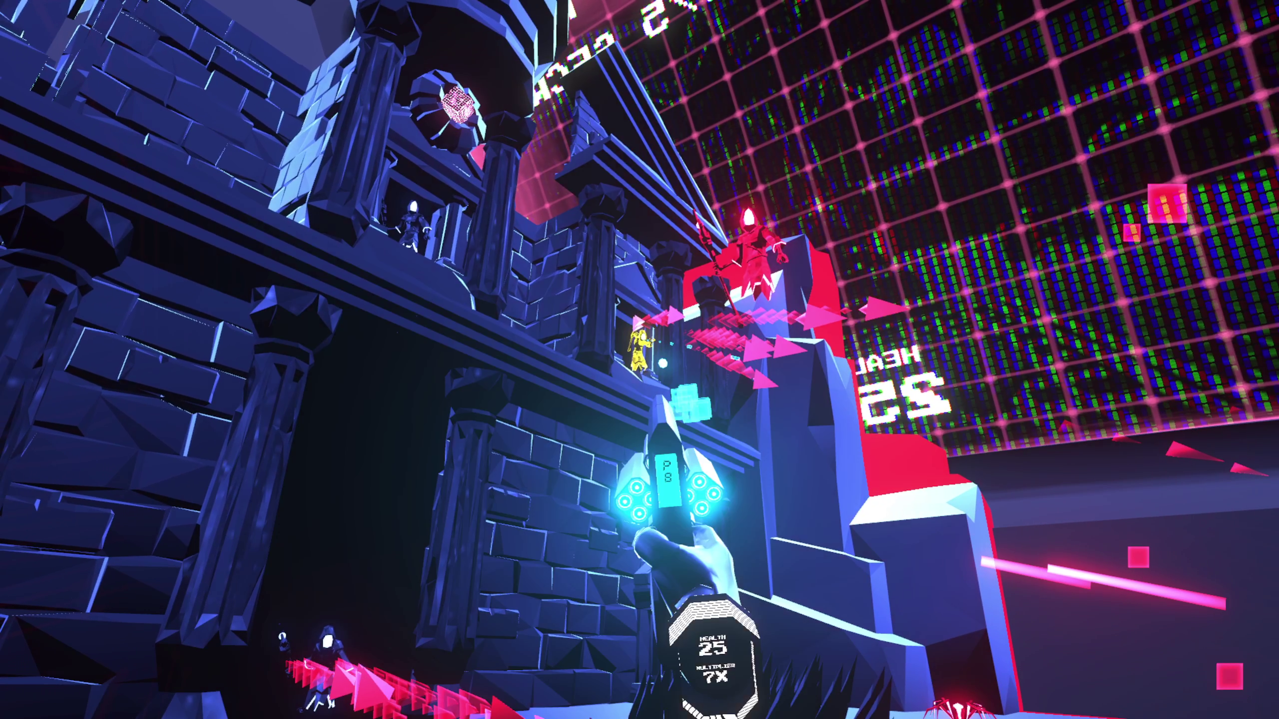 While the action is intense, the game can be enjoyed by beginners and VR veterans and includes hours of content. Destroy your surroundings with multiple weapons, and shoot your way through each retro-futuristic level. Play seated or standing, smooth locomotion or teleportation, all that matters is you secure humanity a place in the future. And if you have some equipment lying around, ARK and ADE is compatible with bHaptics, ProTube, and Liv.