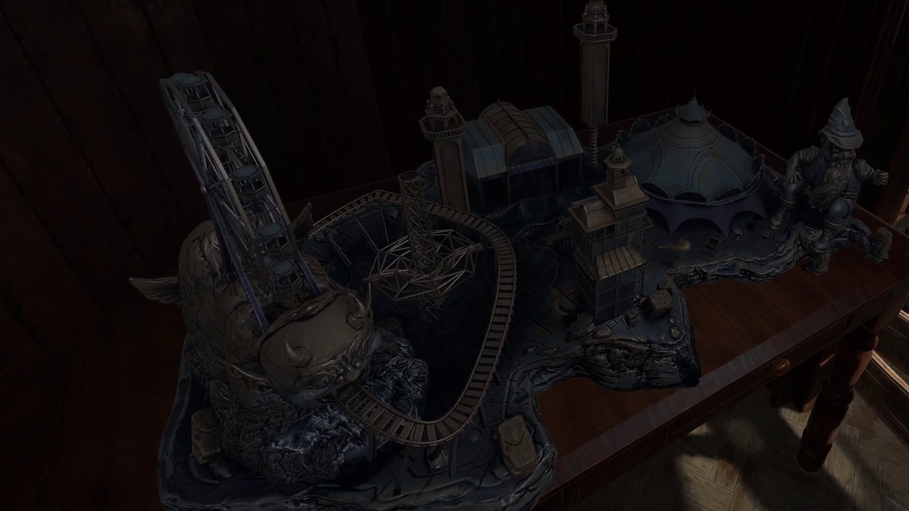 The more I played, the more I was reminded of both Eye of the Temple and The 7th Guest VR. The Amusement combines the physical movement (climbing and navigating) of the former with the environmental, sometimes tabletop-based puzzle solving of the latter.