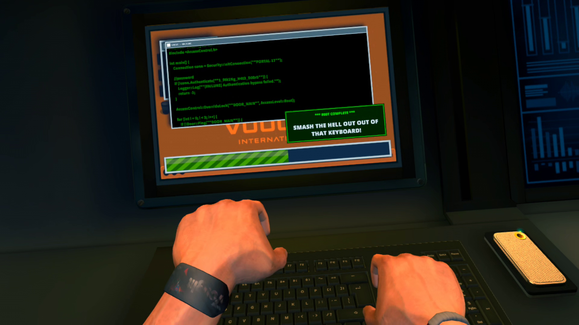 You physically touch half a dozen objects in this game. The Temp V syringes, enemies if using one specific Temp V ability, a hacking device, keycards, keycode terminals, and keyboards, the latter of which is just banged on. Your hands just don't cooperate at times, especially in the vents and using keypads. Telekinesis and teleportation do most of the lifting here, leaving Trigger Warning without a sense of tactile presence I found myself longing for.