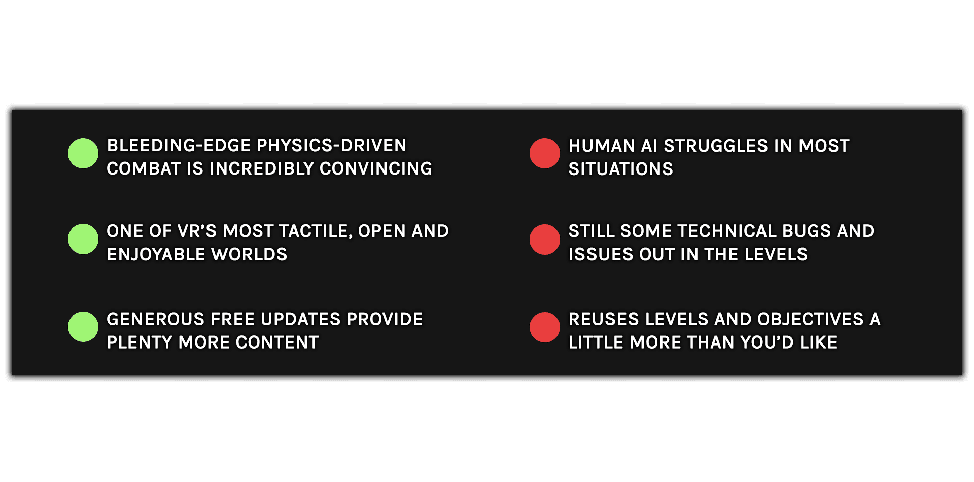 With the free Meatgrinder and Aftershocks updates in tow, The Walking Dead: Saints & Sinners goes from strength to strength. It’s an explosive mix of industry-leading physics and interaction delivering visceral, tactile melee combat that never tires and a dynamic set of systems that fill each of its contained sandboxes with a constant stream of unpredictable surprises and a refreshing focus on player agency. It’s a zombie apocalypse within your grasp – a living, breathing virtual ruin with player-driven highs that easily outshine its experimental lows. In a sea of stale undead clones, The Walking Dead: Saints & Sinners is a cut above.
